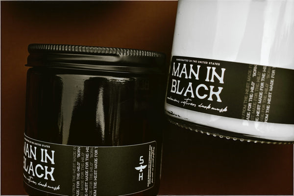 Fill your space with the airy, balanced notes of our "Man in Black" Candle. The sweet yet salty oceanic accords combine with an undercurrent of amber and vanilla.