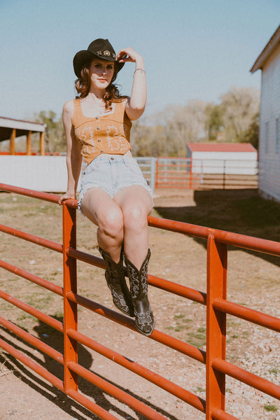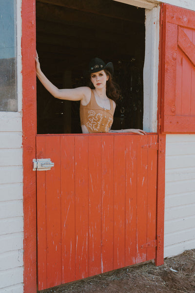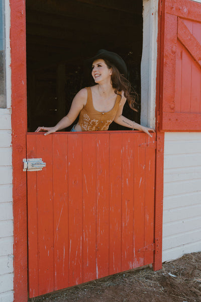 The ultimate in boot stitch corset tops - our Camel Suede Stretch Boot Stitch Corset Top is a must-have for any fashion-forward individual. Made with high-quality suede and stretch fabric, this top features intricate stitching and a flattering corset design. Add some unique flair to your wardrobe with this one-of-a-kind piece!