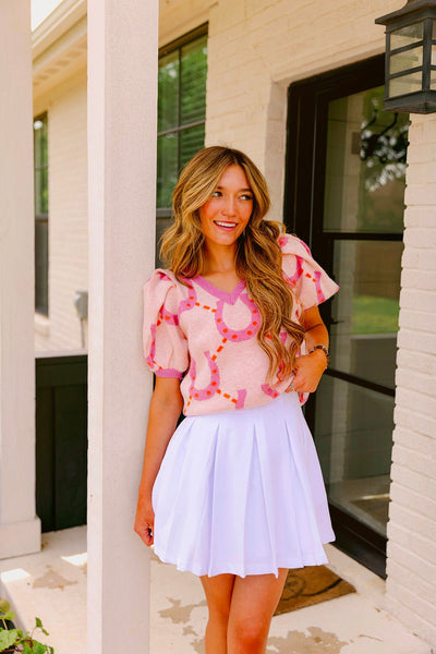 Where western charm meets feminine chic. This puff-sleeve V-neck sweater features a subtle horseshoe pattern and soft volume through the sleeves for a flattering, feminine fit. A classic with a lucky twist.