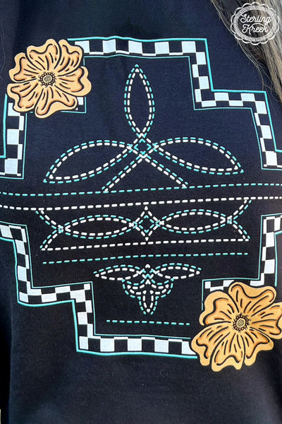 Feel trendy and chic with our Little Country Little Hood Pullover! Featuring a checked aztec graphic, viral bootstitch, and two tooled leather flowers, this Gildan pullover is the perfect balance of style and comfort. Get ready to turn heads with this effortlessly cool piece!